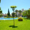 El complejo La Isla en Jávea destaca por su gran piscina comunitaria con una isla central, amplios jardines con césped natural, duchas exteriores y un ambiente familiar y tranquilo.