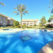 El Residencial Golden Beach 2 ofrece un entorno cuidado y relajante con amplias zonas ajardinadas con césped, palmeras, sombrillas de mimbre y un estanque decorativo.